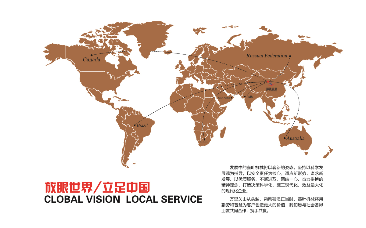 多年來公司始終堅持以人為本、以質量求生存、以科技作動力、以創(chuàng)新促發(fā)展、以服務謀效益的經營理念。矢志耕耘,追求卓越,止于至善的企業(yè)精神,創(chuàng)造需求,服務社會為鑫葉機械走向世界奠定堅實的基礎。